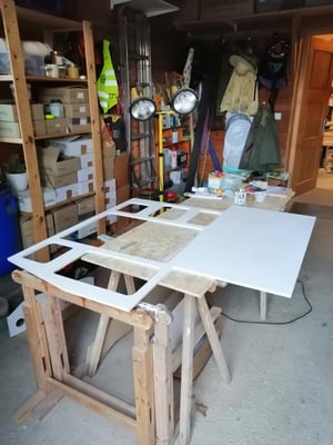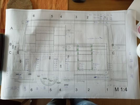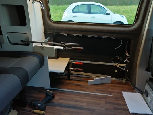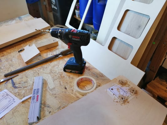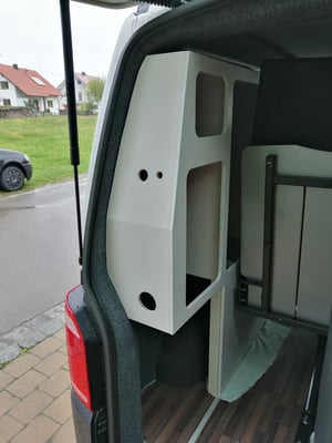 In der Zwischenzeit haben wir die Schrankwand inkl. Elektronik geplant. Als wir unseren Bus dann wieder bei uns hatten, ging es direkt weiter mit dem Bau der geplanten Schrankwand inkl. Küche.