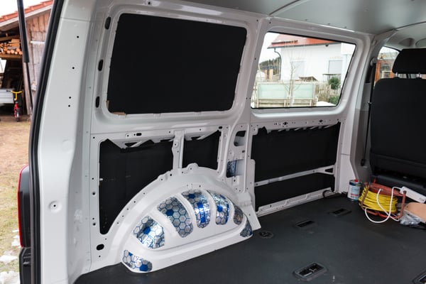 Zahllose Wochenenden haben wir gedämmt, Kabel verlegt und den Innenraum mit Velour bezogen. Dann haben wir unseren Bus dem Ausbauer unseres Vertrauens gegeben.